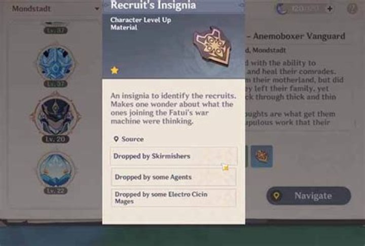 Recruit’s Insignia is a Character Level-Up material (item) in Genshin Impact 2.3. Guide includes locations, & how to get Recruit’s Insignia. What Is Recruit’s Insignia? An insignia to identify the recruits. Makes one wonder about what the ones joining the Gatui’s war machine were thinking Recruit’s Insignia can be obtained by beating Skirmishers.
