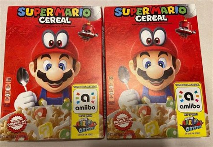 Featuring Power-Up Marshmallows This box is a special amiibo-try it with SUPER MAR ODYSSEY. Every Super Mario Cereal Box is an amiibo you can use to unlock special content to power up your Super Mario Odyssey adventure.
