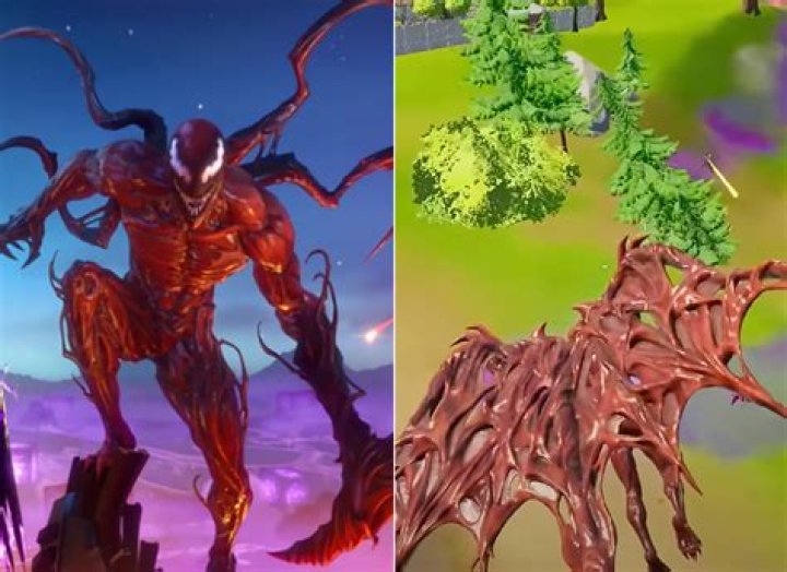 Fortnite Carnage and Venom Symbiotes Location. At the start of each match, the Carnage and Venom Symbiotes will be marked on the map after the first storm circle appears. They can appear in several places on the island. For example, the Carnage Symbiote can appear near Corny Crops while the Venom Symbiote has a chance to spawn near Lazy Lake.