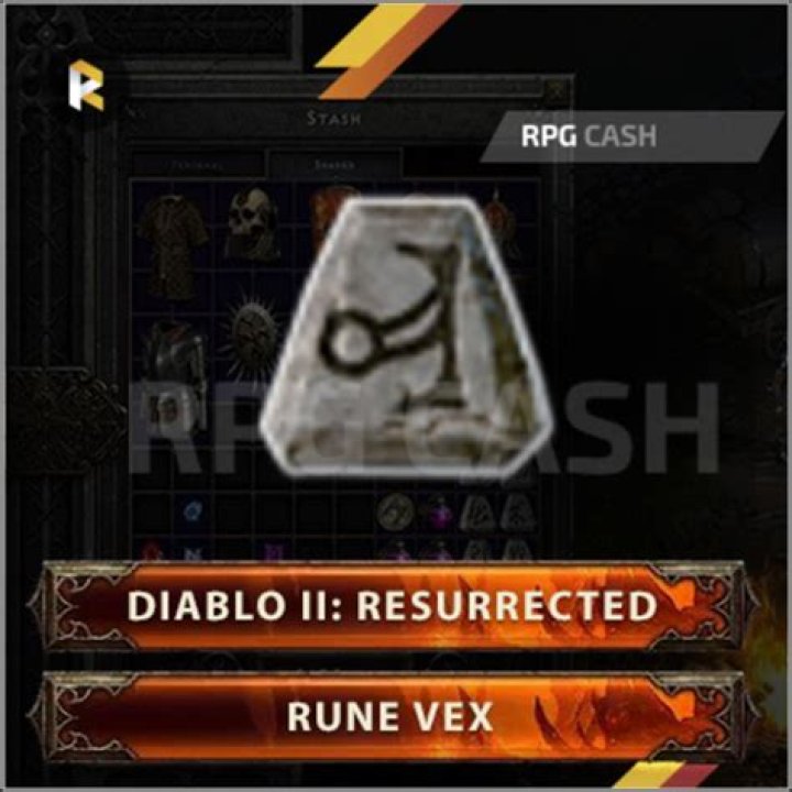 A Vex rune is a high tier rune that can be socketed into armor and weapons in Diablo 2: Lord of Destruction and Diablo 2 Resurrected. A Vex rune provides +5% to Maximum Fire Resist when inserted in shields or off-hands, body armor and headgear, and 7% Mana Stolen per Hit in weapons. You can cube 2 Gul runes and a ruby together to get a Vex rune.